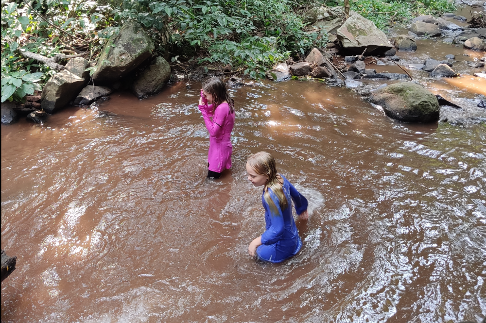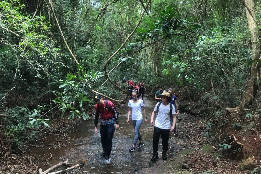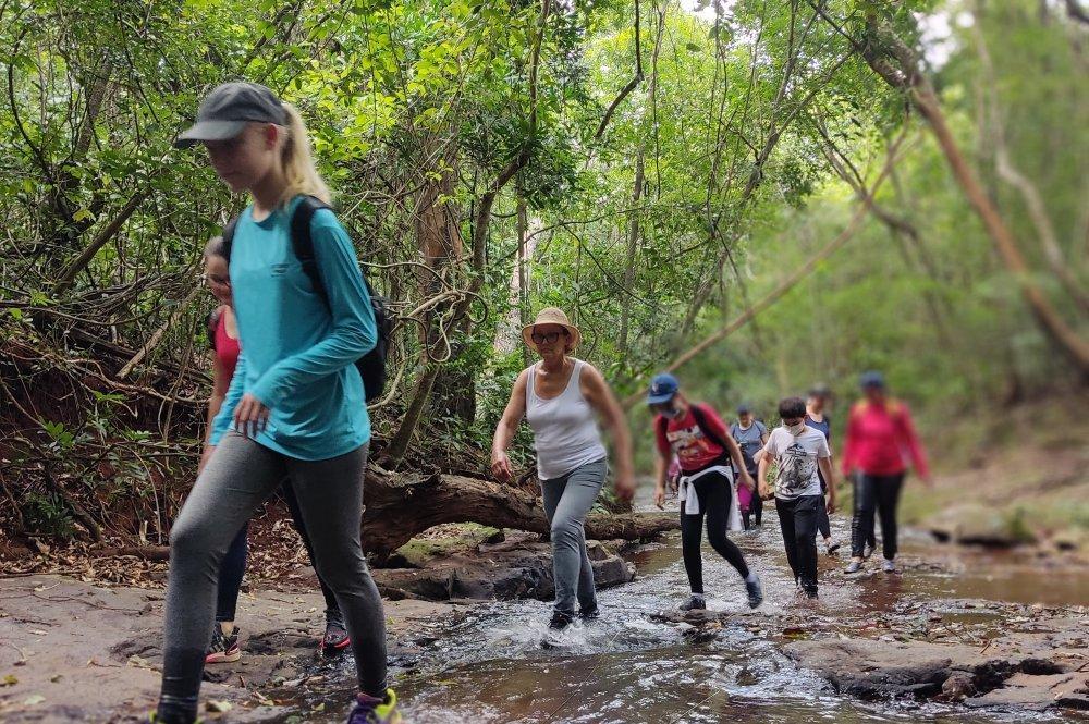 Faremos a trilha, sendo uma parte um aquatrekking, ou seja, caminhando por dentro do rio, em meio a mata, com o nível da água na altura da canela. Uma experiencia imersiva na natureza.
