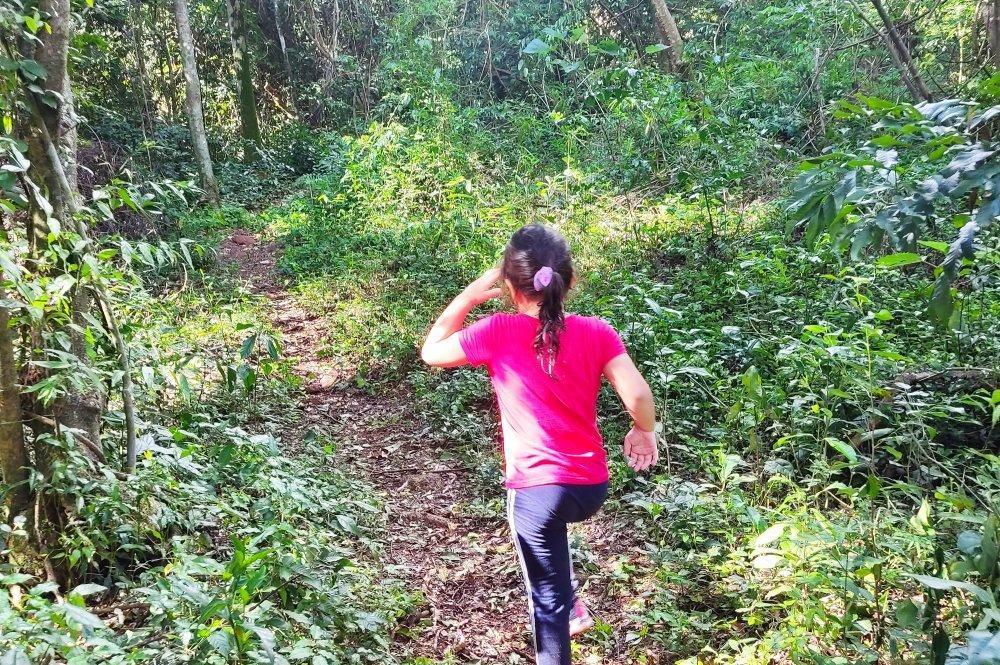 A trilha é leve e feita no meio da mata, possui no total 2,5 km. Ideal para crianças e familias.