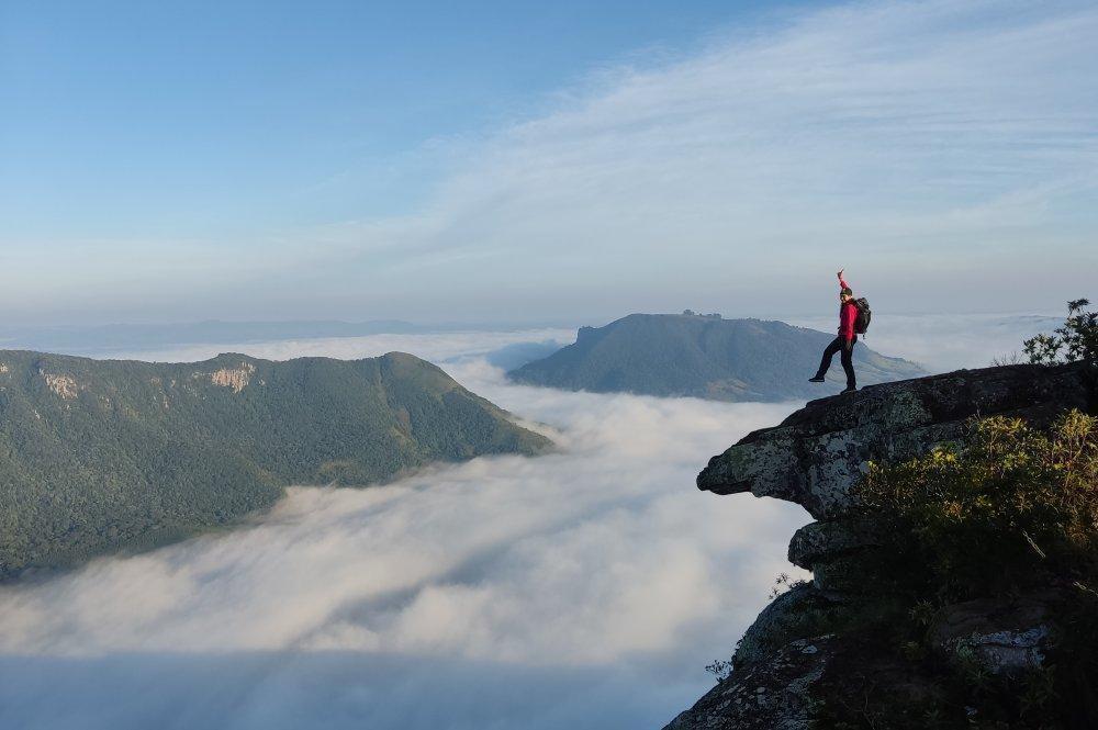 Rapel de 15 m na Cachoeira do Rio Azul, localizada no distrito de São Sebastião, em Ouro Verde do Oeste.